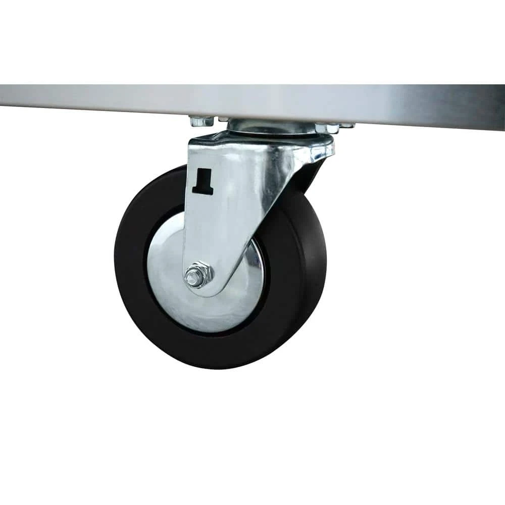 - 6 in. x 2 in. casters, 2 swivel and 4 swivel casters with brake
