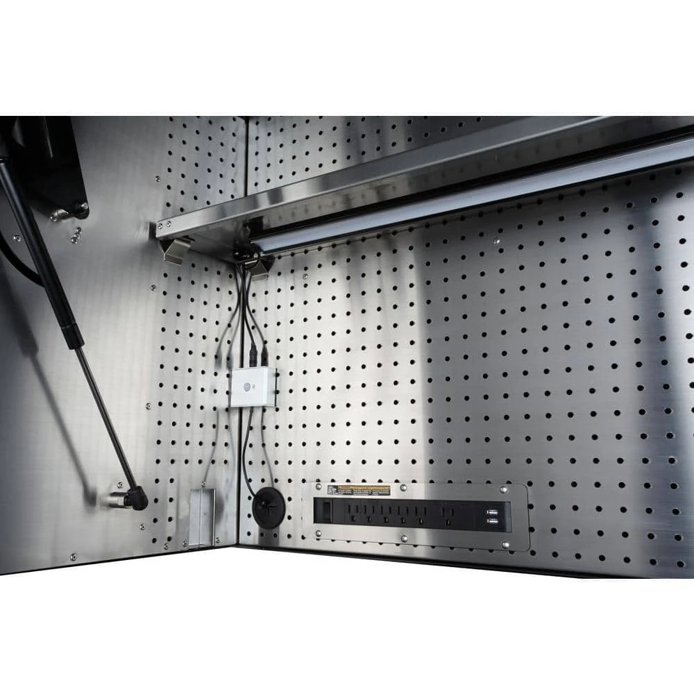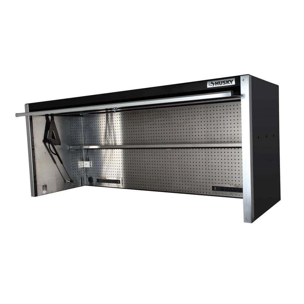 The all-new Husky Professional Duty modular tool storage system has arrived at The Home Depot. Designed to meet the demands of professional mechanics and enthusiasts, this collection is comparable to the industry ft. s high-end steel storage cabinets and is backed by a Limited Lifetime Warranty. The Husky Professional Duty Hutch is 30 in. tall and intended to create a secured work storage space above the Husky Professional Duty 72 in. 20-Drawer Workbench (sold separately). This double-walled hutch is constructed with a welded 16-Gauge body and 430-grade stainless-steel interior walls. Gas struts make it easy to smoothly open the lid and keep it from slamming shut. The full-width stainless-steel shelf adjusts to fit your needs and give the best light bar placement. There are also dual power strips on either side of the hutch providing a total of 12 outlets and 4 USB ports to power tools and electronic devices. To light your workspace, a magnetic LED provides 2,000 Lumens and sits in an articulating tray to change the direction of the light according to your preferences. The light includes a motion sensor for automatic on/off, as well as a dimmer switch. Workplace security has also been prioritized with Kwikset SmartKey Security locking system, which allows you to easily re-key all your Husky Professional duty components and your home or shop to the same Kwikset key. Look no further, the Husky Pro Hutch will be the epitome of your workshop and a great investment in your future.