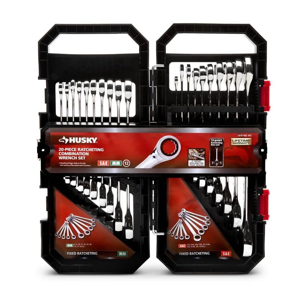 Husky Ratcheting Wrenches feature a 12-point design pattern to help prevent fastener damage and increase torque. Their slim design fits into tight spaces where other wrenches may not. A durable, polished chrome finish provides corrosion resistance for a lifetime of use.