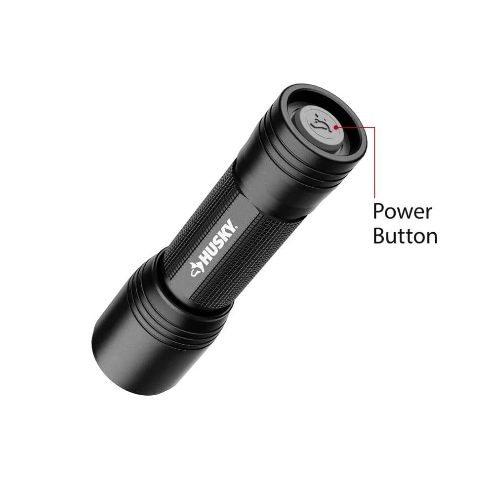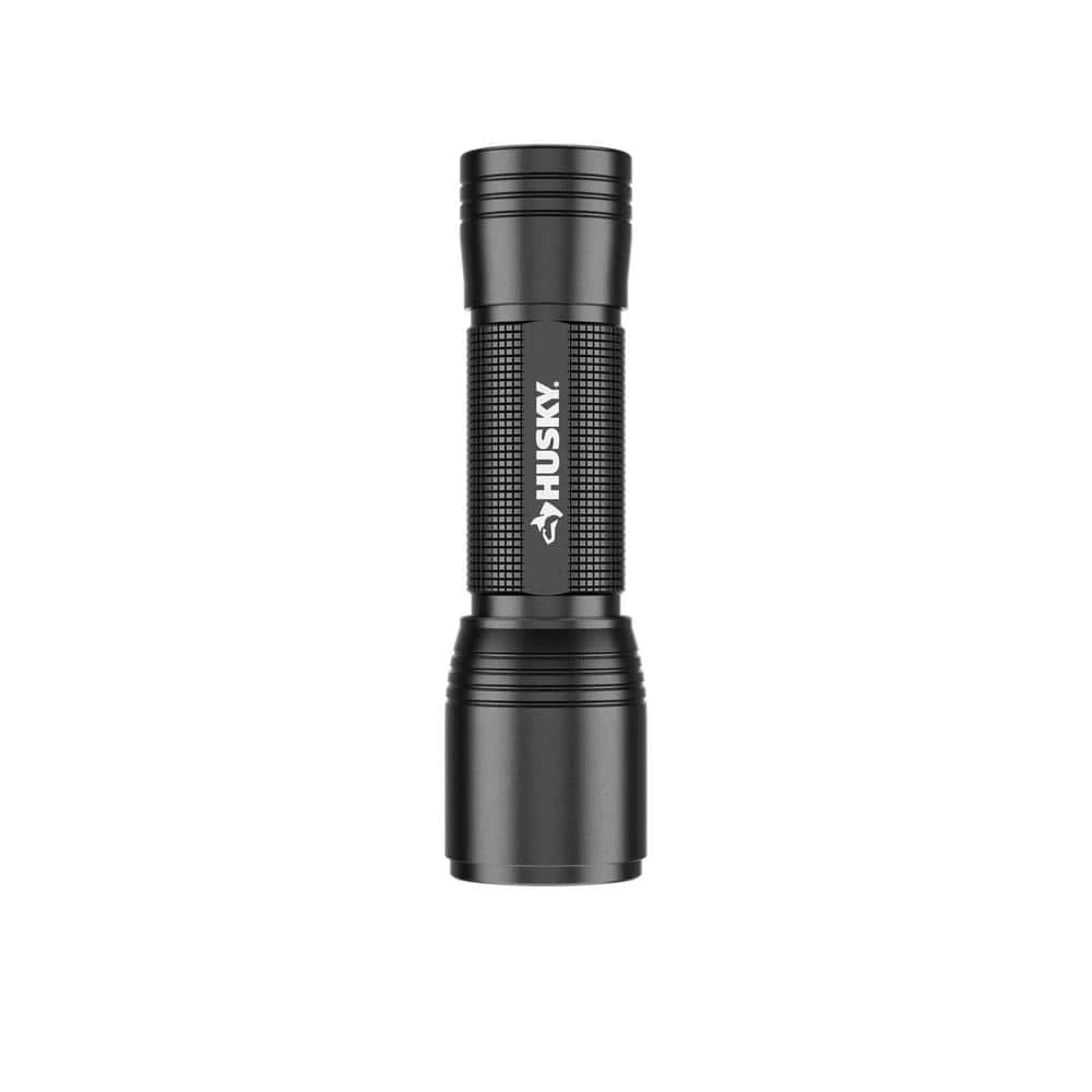 The Husky 750 Lumens Water and Impact Resistant Aluminum Focusing Flashlight is sold complete with 4 AAA batteries, ready for instant use. Its slide focus quickly allows you to zoom from a spot to a wide flood light beam in a matter of seconds. Rugged durability with a comfortable hand grip makes this a flashlight ready for all your lighting needs. Great for household or outdoor use.