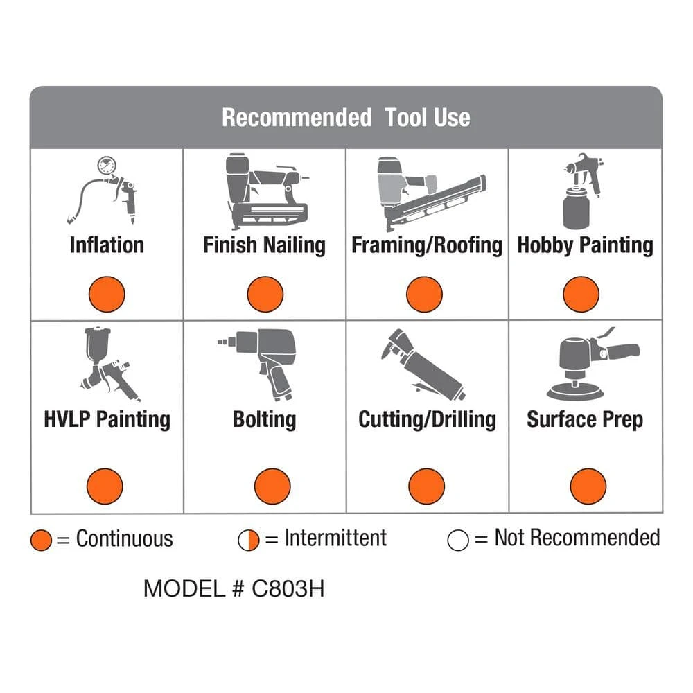 - Large capacity, 80 Gal. ASME air receiver, with a large 3/4 in air outlet port, provides more air for continuously running air tools such as spray guns, grinders, sanders, sandblasters, etc