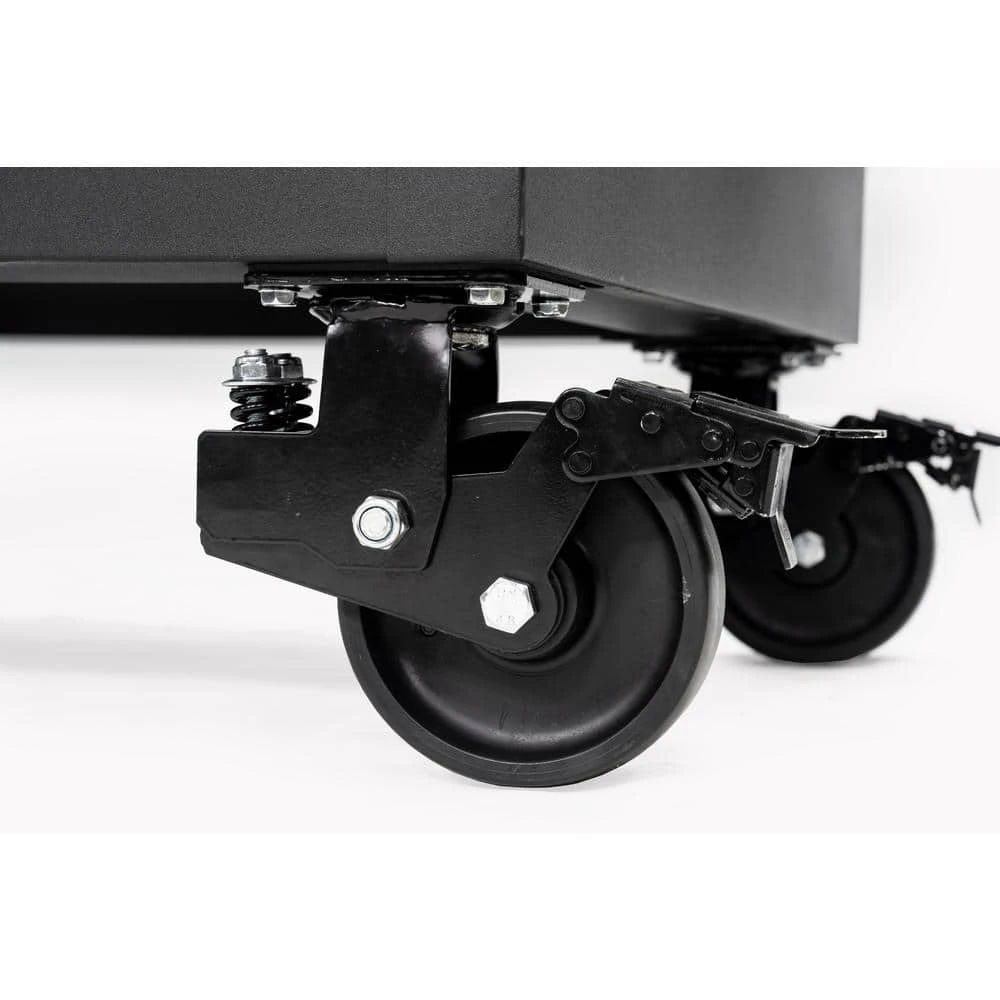 - 6 in. x 2 in. casters heavy-duty spring loaded, 4 swivel and 4 swivel casters with brake