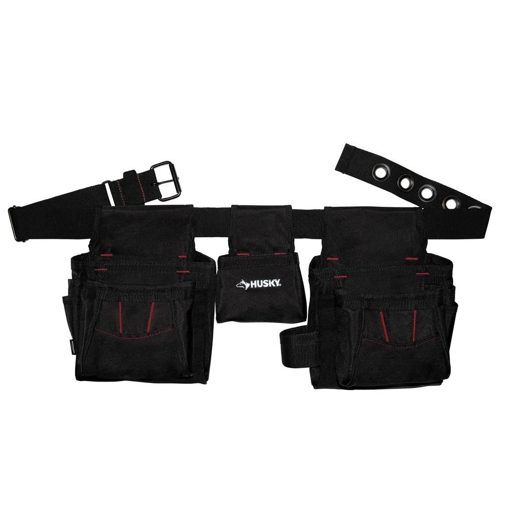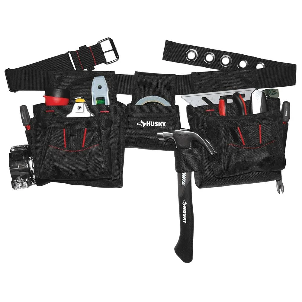The Husky Handyman Tool Belt has 12 pockets for your tool-storing convenience. This belt has 2 large pockets and 2 nail bags as well as a metal tape measure clip and a web hammer holder. Great for use while working on the job site or at home. Durable, but lightweight material will not add extra weight will using on a job.