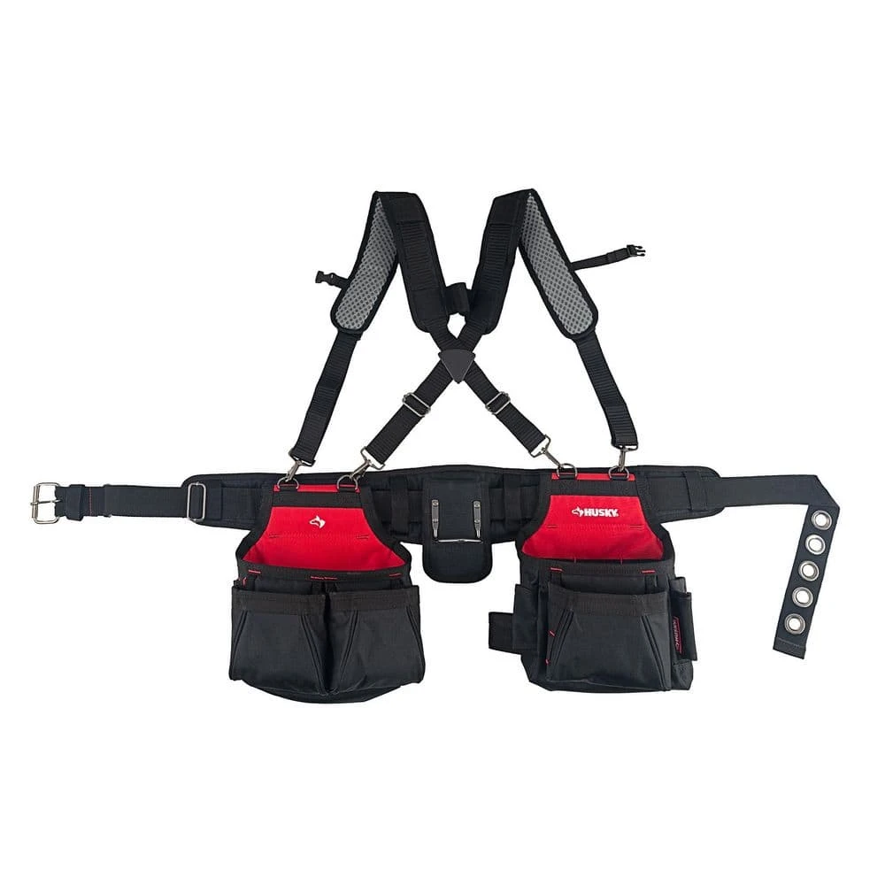 Husky continues to bring excellence to the jobsite. The all-new Husky Contractors Two Bag Belt with Suspenders is exactly what you need to tackle any task put in front of you. This upgraded tool belt with suspenders has an ideal pocket configuration for countless tool collections. The 600D material is rugged and will ensure long lasting use throughout the years. A metal hammer holding and tape measure clip are more features that make this tool belt the best on the jobsite. Add this Husky tool belt to your collection today.