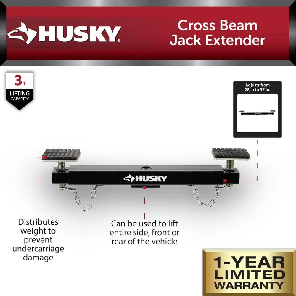 The Husky Cross Beam Jack Extender allows you to replace the saddle on your floor jack with the cross beam saddle adaptor to help provide greater stability and balance. A wide working range helps distribute weight evenly and prevent damage to the undercarriage. The Husky Cross Beam Jack Extender works with most floor jacks.