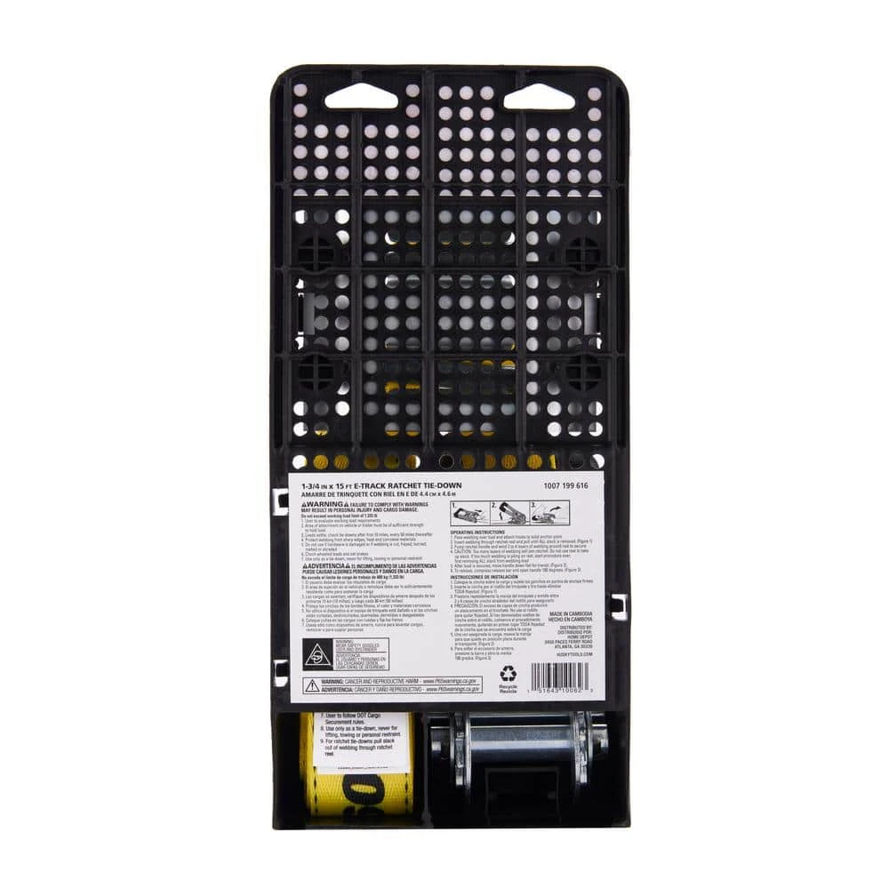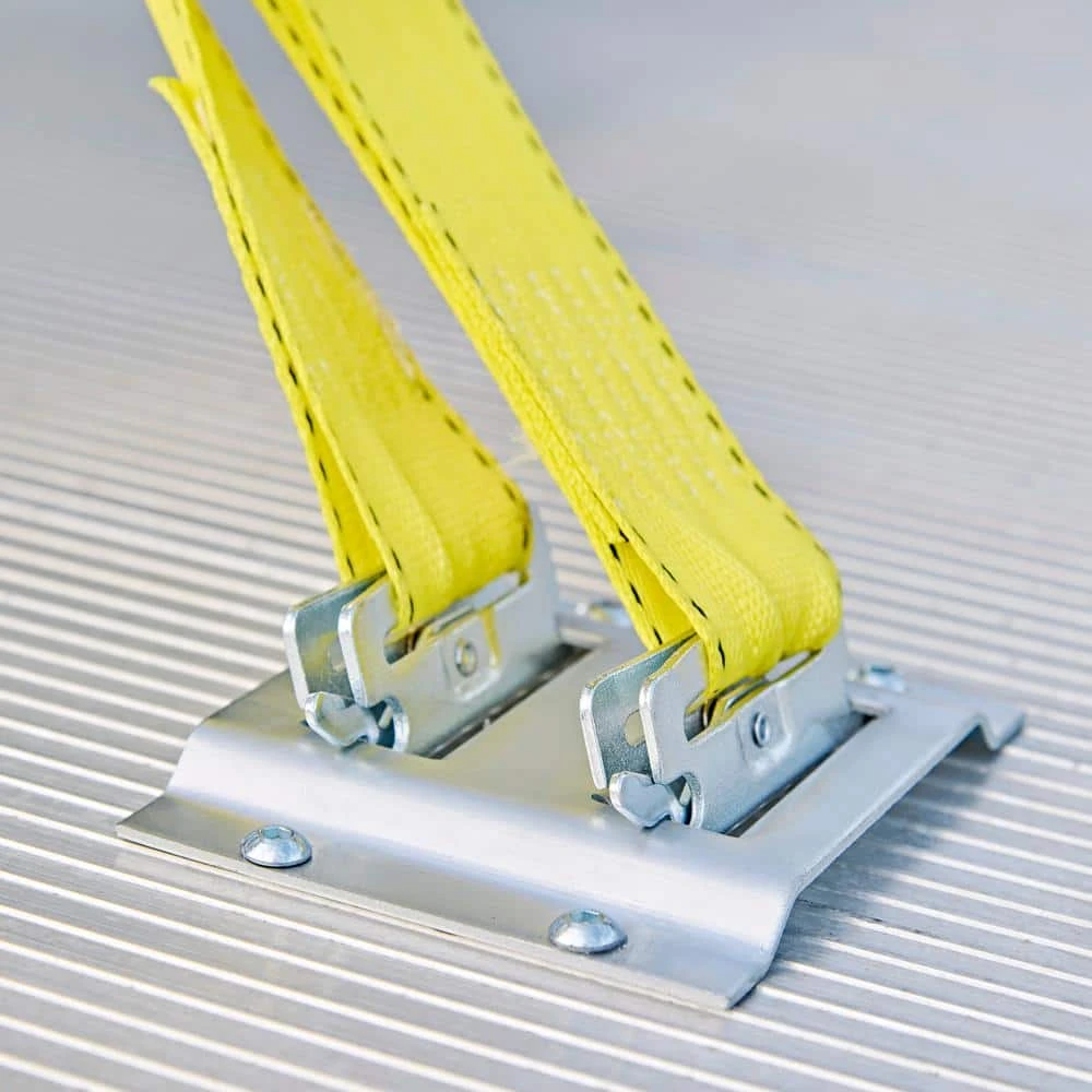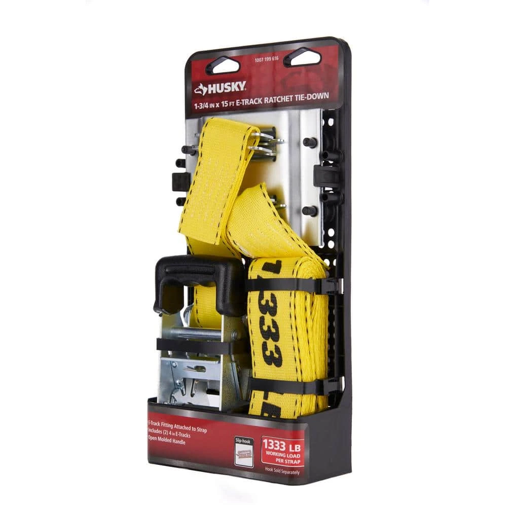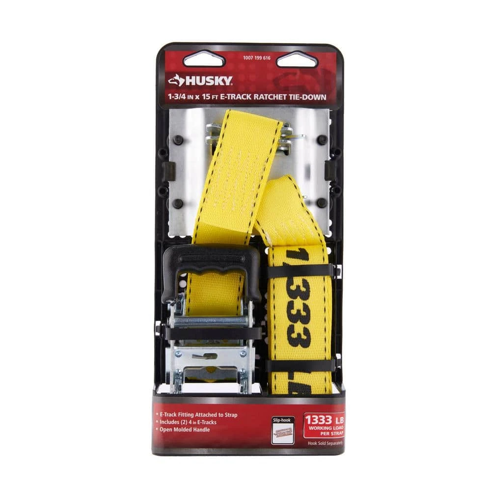 Designed to remain tough when subjected to weather and abrasion, the 2 in. x 15 ft. Logistic Ratchet Tie-Down comes with E-Track Fitting attached to the strap and Horizontal E-Tracks to attach to your trailer too. The spring loaded release mechanism ensures that the ratchet will never open accidentally and a open molded grip ratchet handle increases speed and comfort. This ratchet is ideal for industrial applications with is tie-down working load limit of 1,666 lbs. and a 5,000 lbs. break strength.