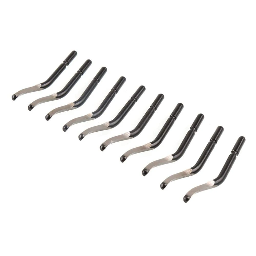 The Husky Deburring Tool blades remove burrs from copper, steel, PVC and aluminum pipe edges remaining from cutting, drilling, grinding or milling projects. This 10 pack of E10 replacement blades works for replacing blades on the Husky Deburring Tool (1003067552) and other brands of deburring tools. The blades are made of high-speed steel for professional results.