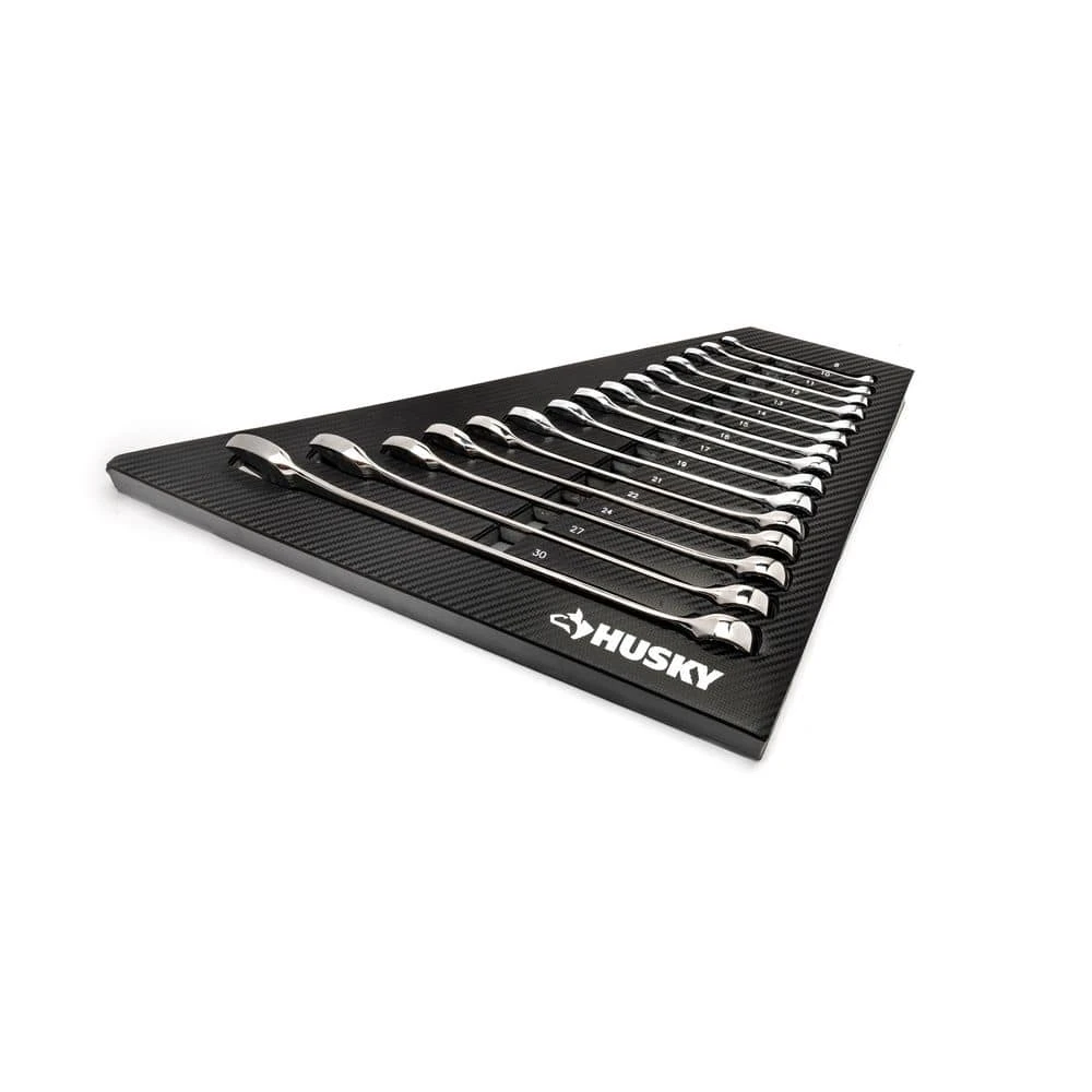 This Husky 15-piece EVA foam storage tray for combination wrenches is a great solution for garage organization needs. Sizes are clearly marked for quick identification so nothing will slow you down. Fit this tray inside your toolbox drawer or anywhere in your shop for structured storage wherever you need it.