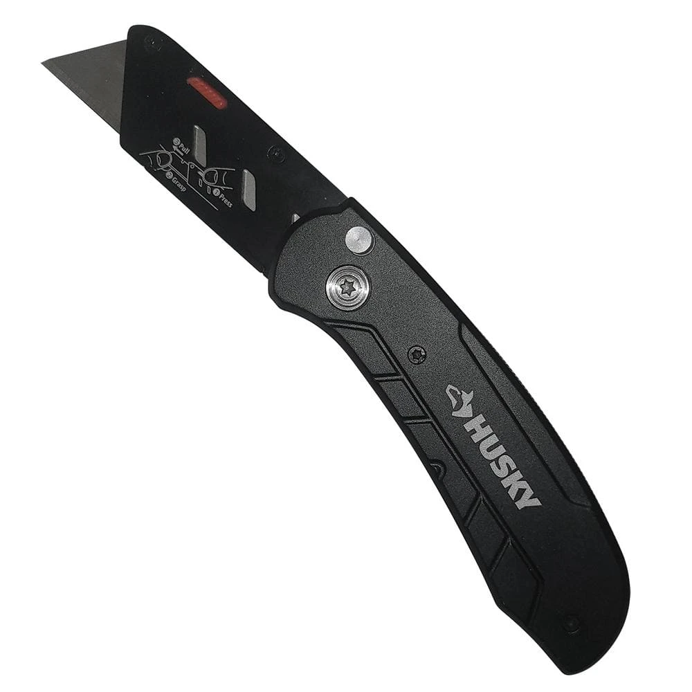 The Husky Extend-A-Blade folding knife is designed for jobs where you need more cutting depth, like drywall repair and removing carpet, the knife holds blades that are double the length of standard retractable knife blades. This makes it ideal for cutting through thicker materials that standard box cutters just don’t have the reach to get through efficiently. The knife has 3 sliding blade positions, allowing you to quickly adjust it to just the right length for each project. Simply hold and release the summary while pulling the blade to the next locked in length. The 3 position handle locks while in the closed position for safety, securely locks in to a 45 position (approximately) for more aggressive cutting as well as a standard fully open position, ready to take on your cutting projects. The knife has a convenient folding design, making it easy to store in your pocket or tool belt when your on the go. This also ensures that the blade is concealed when it is not in use, durable heavy-duty construction helps it stand up to regular use on the job or during your DIY renovation projects. With the Extend-A-Blade utility knife, blade changes are easy: simply push and hold the summary to slide your blades in and out whenever they need replacing. This time-saving feature is especially valuable for home improvement workers, handymen and contractors who tear through several blades each day.