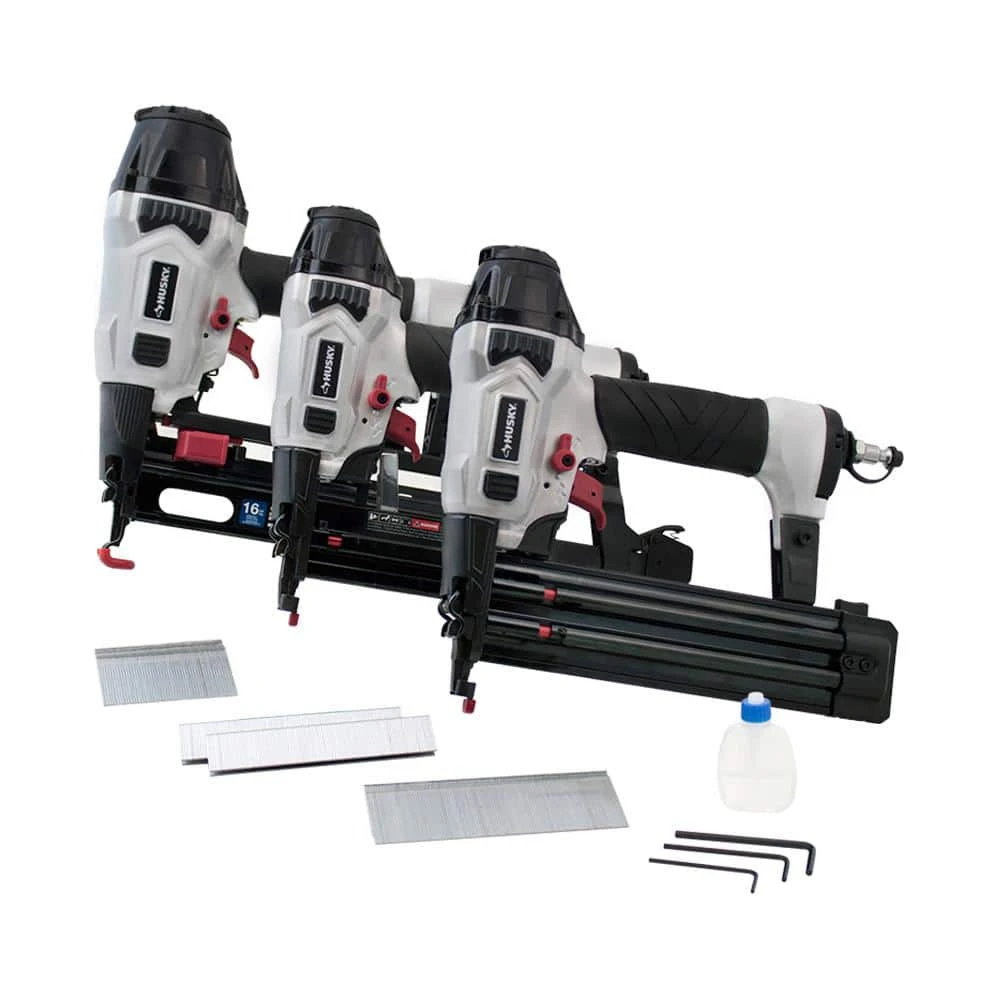 Get the job done with this Finish Kit with 16-Gauge Finish Nailer, 18-Gauge Brad Nailer and 18-Gauge Stapler (3-Piece). You can use it for single fires or sequential firing. Easily switch between the two modes. Use this to work on cabinets, trim projects or other work projects.