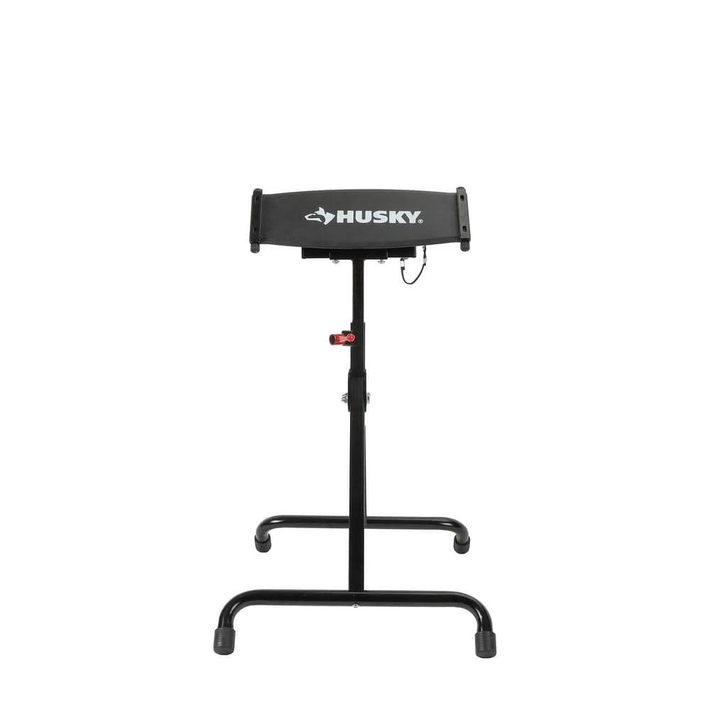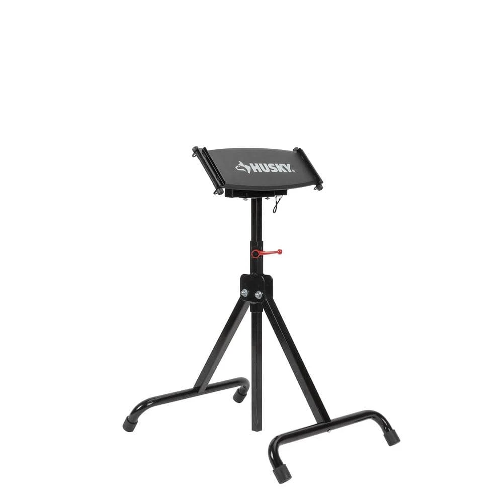 The Husky Glide Top Stand is constructed of high quality steel, with thick wall tubing, it’s an ideal stand for use with almost any tool in various work areas. Adjustable stand height will satisfy different requirements. Foldable legs allows for easy storage and easy transportation. Extra guide design will help prevent outfeed from slipping off. Includes a lock pin and an operator’s manual. Non-slip feet to insure stable performance.
