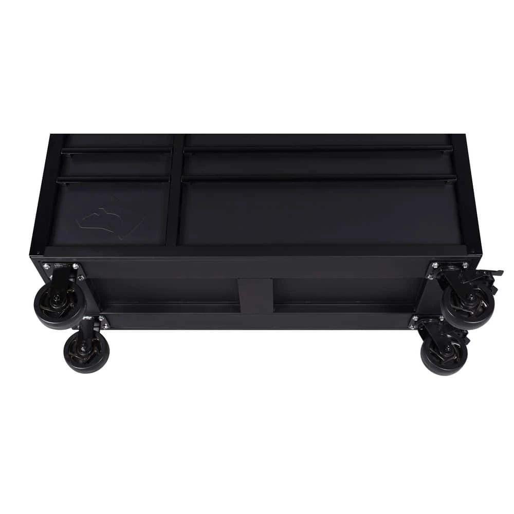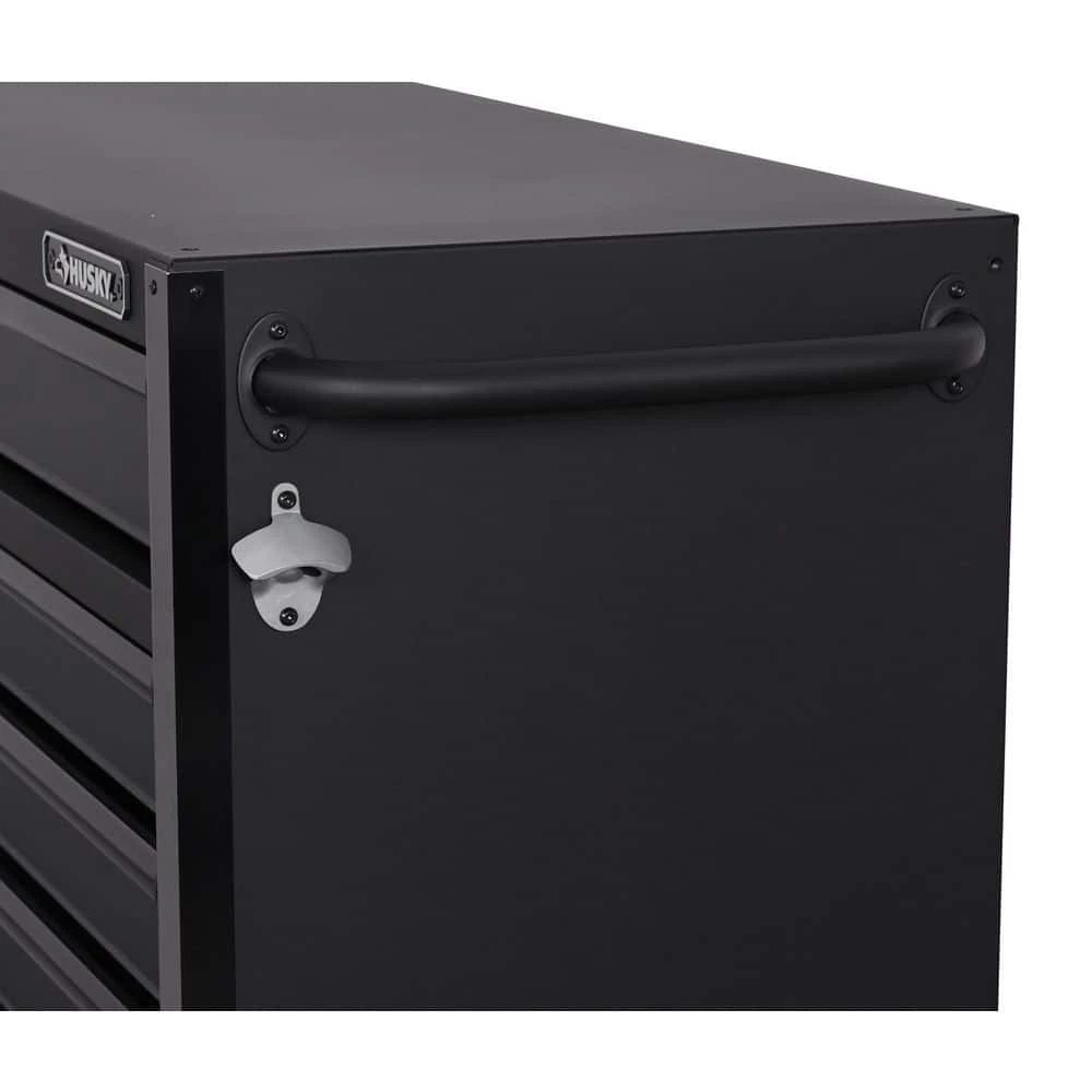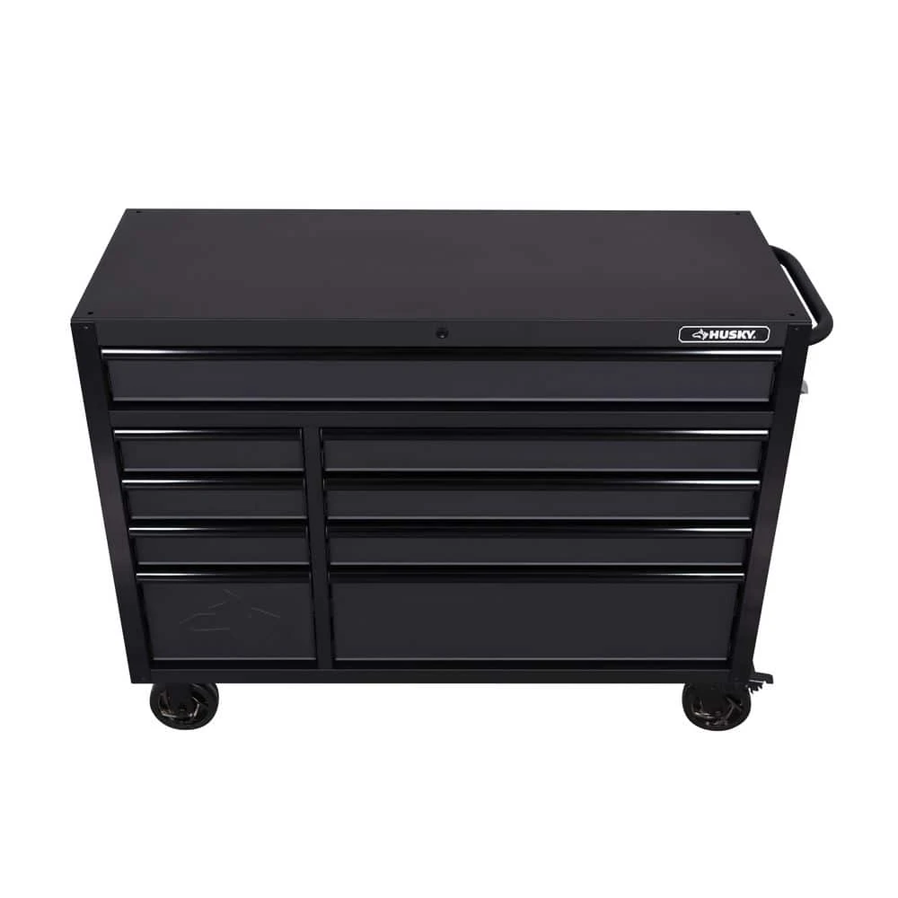 The latest generation of the Husky Industrial 52 in. W x 20.0 in. D 9-Drawer Rolling Cabinet Tool Chest has arrived. This cabinet adds some exciting new features to an already popular design. An additional set of slides has been added to the full-width drawer to accommodate heavier loads. The casters have been upgraded to an even heavier-duty 6 in. x 2 in. size. The cabinet is built to last with all-welded steel construction and is finished with a tough, industrial matte black powder-coat finish. All drawers are full-extension and glide on ball bearing slides that can support up to 120 lbs. These slides also have a soft-close retention system that pulls drawers closed and ensures that they are secured. Moving the cabinet around your work place is easy with the ergonomic tubular handle. Pair this chest with the coordinating 6-drawer chest (Model: H52CH6HDV4) to create the ultimate tool storage solution.