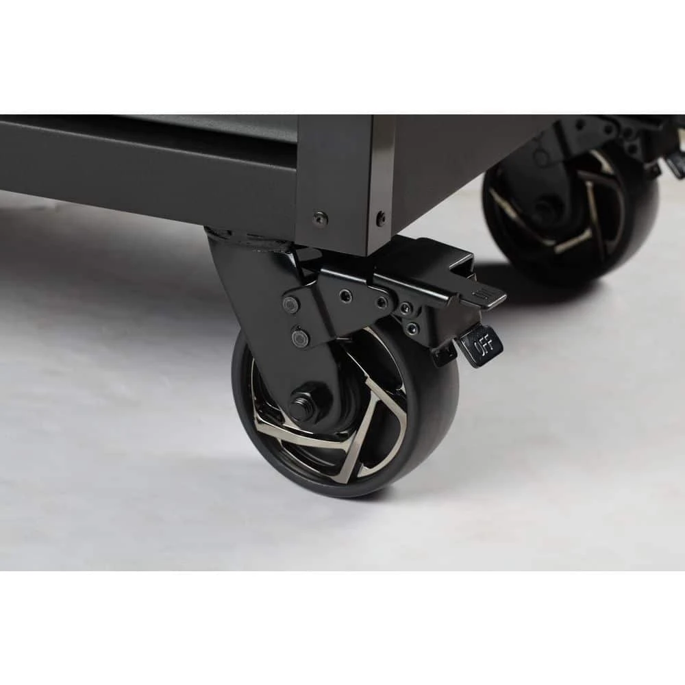 - 6 in. x 2 in. casters (2 stationary and 2 swivel with foot pedal locks) support up to 3000 lbs.