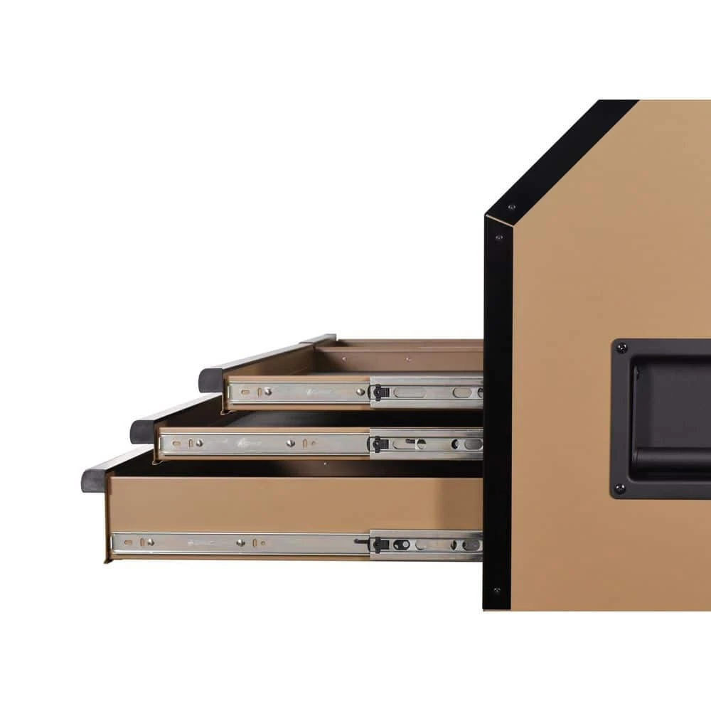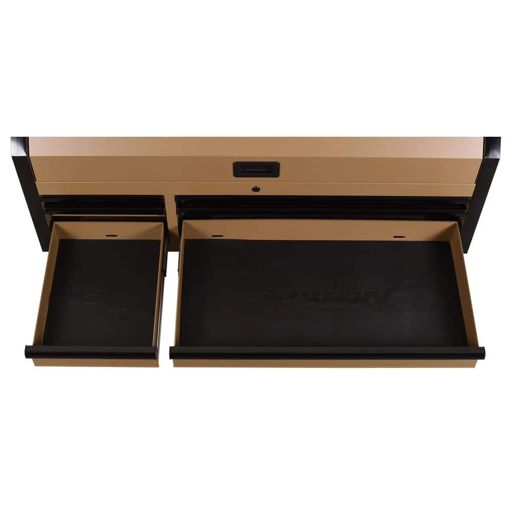 Latest generation of the Husky Industrial 52 in. W x 21.5 in. D 6-Drawer Tool Chest has arrived. The chest is built to last with all-welded steel construction and is finished with a tough, industrial matte tan powder-coat finish. All drawers are full-extension and glide on ball bearing slides that can support up to 120 lbs. These slides also have a soft-close retention system that pulls drawers closed and ensures that they are secured. The reinforced top lid is supported by gas struts, which make it easier to open and close, while the back of the top till has a large magnetic plate that provides storage and quick access to frequently used tools. Also, inside the lid are 6 electrical outlets and 2 USB ports that allow you to securely charge tools and portable devices while unit is locked. Pair this chest with the coordinating 9-drawer cabinet (Model: H52TR9HDV4) to create the ultimate tool storage solution.