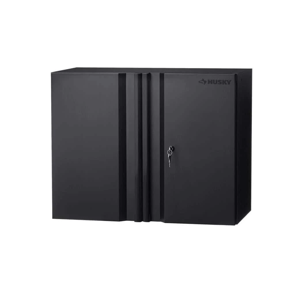 Organize your garage, workspace, basement and more with this Husky Steel Wall Mounted Cabinet. It features a black finish on the 24-gauge steel to match the rest of your cabinetry and it has an adjustable shelf inside, so you can customize it to meet your needs. The doors have a lock to protect your items, plus it comes to you fully assembled for a breezy installation.
