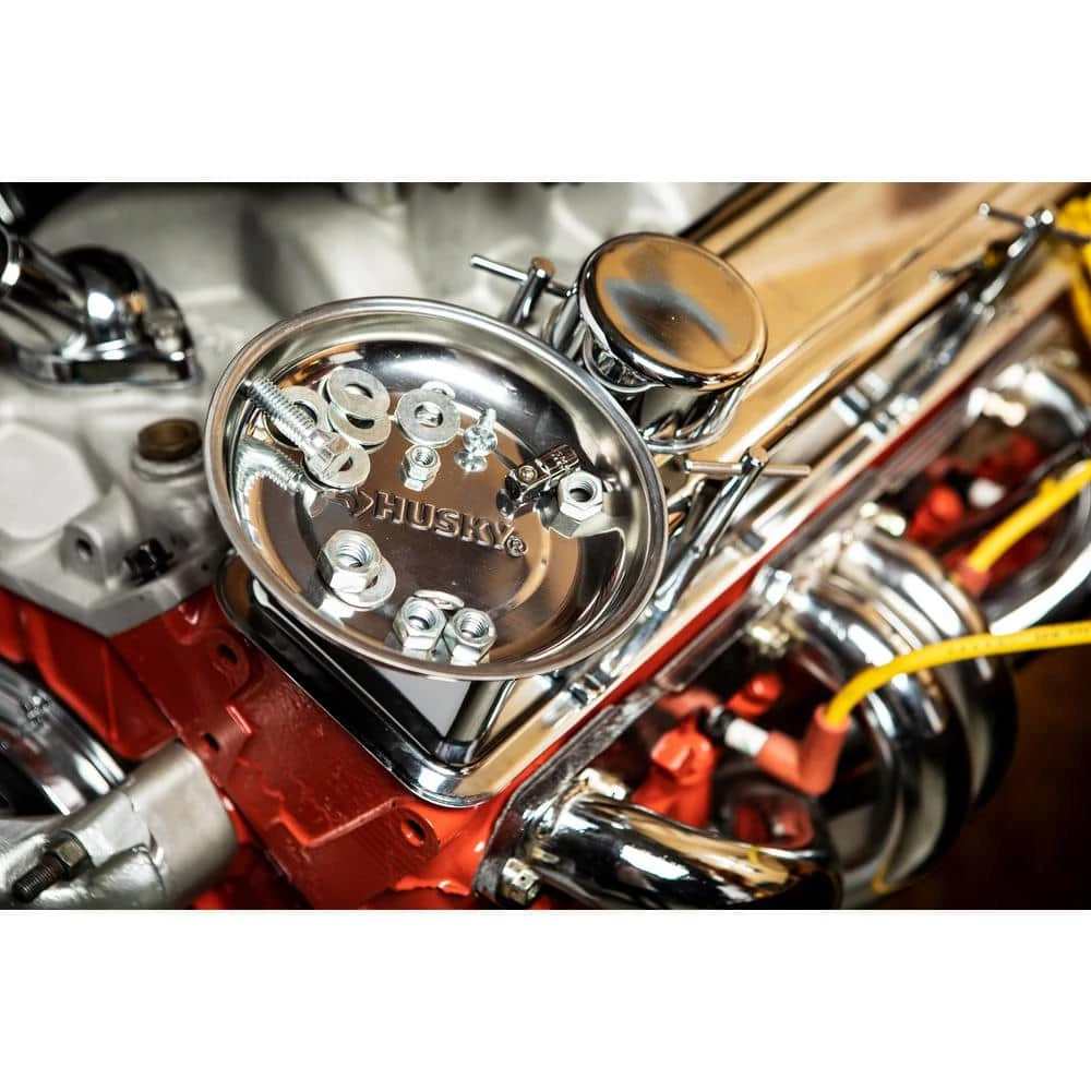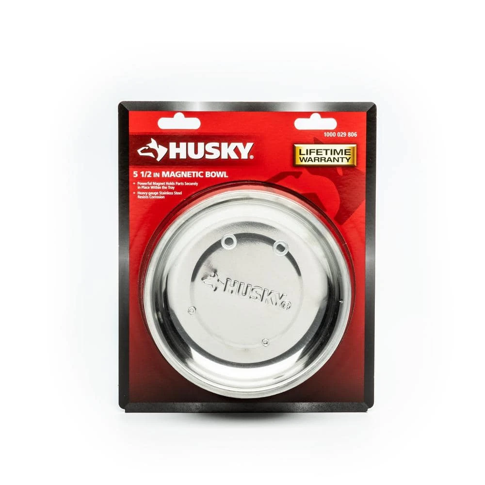 Keep all those loose nuts, screws, bolts, and other small parts in one place while working on projects with the Husky magnetic parts bowl. This 5-1/2 in. steel bowl uses a powerful magnet to keep both itself securely in place on any metal surface as well as any metal fasteners placed in the bowl from falling out. This magnetic parts bowl is perfect for any auto repair work or DIY projects where you need to keep track of nuts, bolts, and screws.