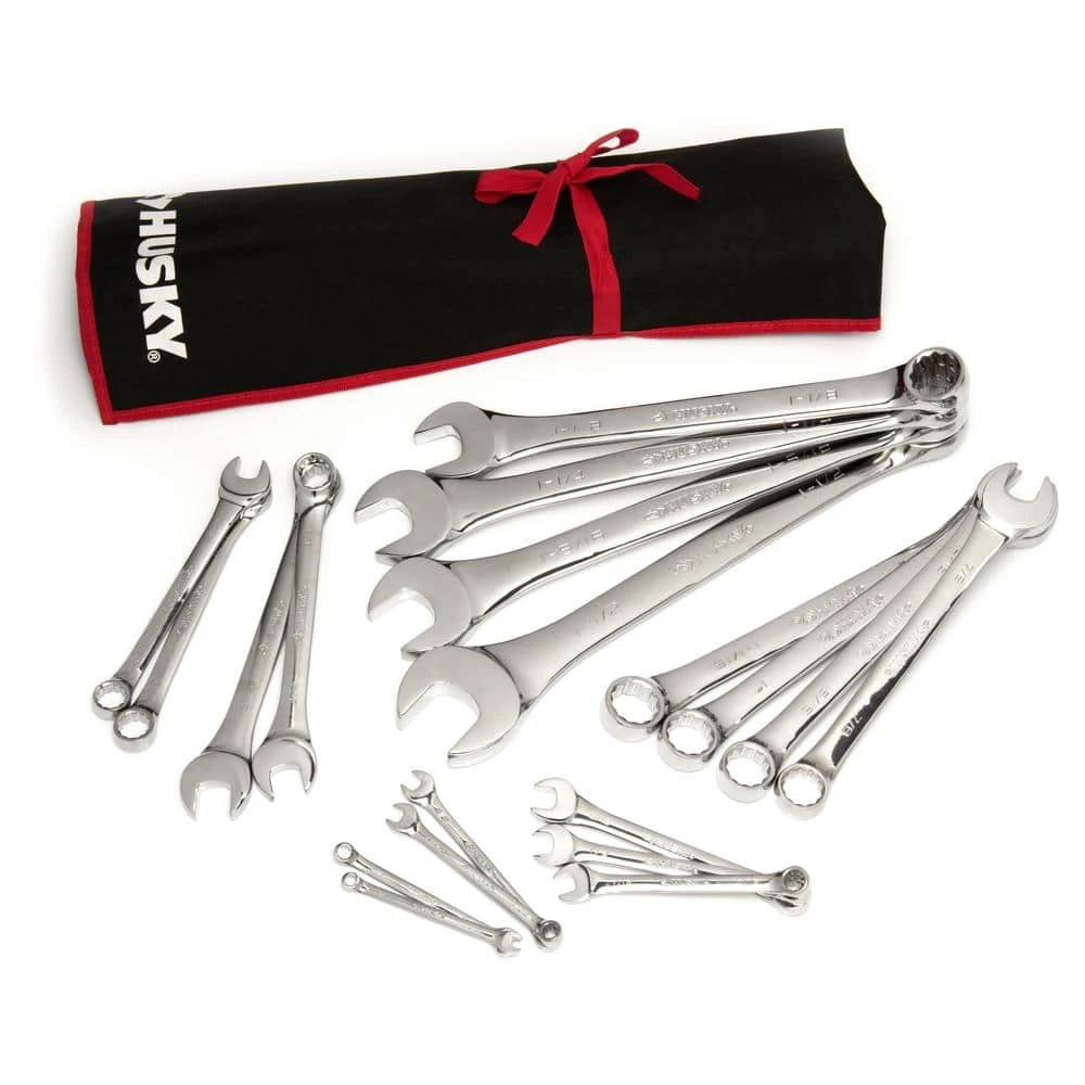 Husky Wrenches feature a 12-point design pattern to help prevent fastener damage and increase torque. Their slim design fits into tight spaces where other wrenches may not fit. The polished chrome finish provides corrosion resistance.