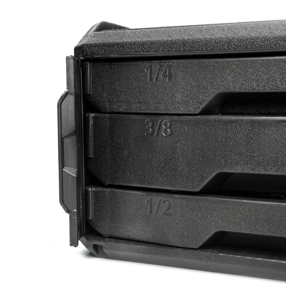 - Set includes 1/4 in., 3/8 in. and 1/2 in. 72-tooth ratchets, (49) 1/4 in. drive sockets, (3) 3/8 in. drive sockets, (24) 3/8 in. drive bit sockets, (12) 1/2 in. drive sockets, 4 drive extensions, 10 combination wrenches and 164 other tools
