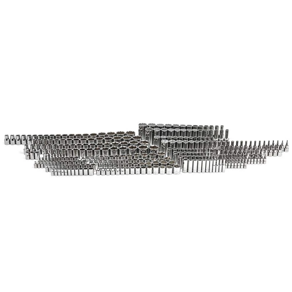 - Set includes 5-drive tools, 18-extensions and adapters, 3-socket rails, 368-sockets, 71-wrenches, 35-hex keys, and 72-other tools