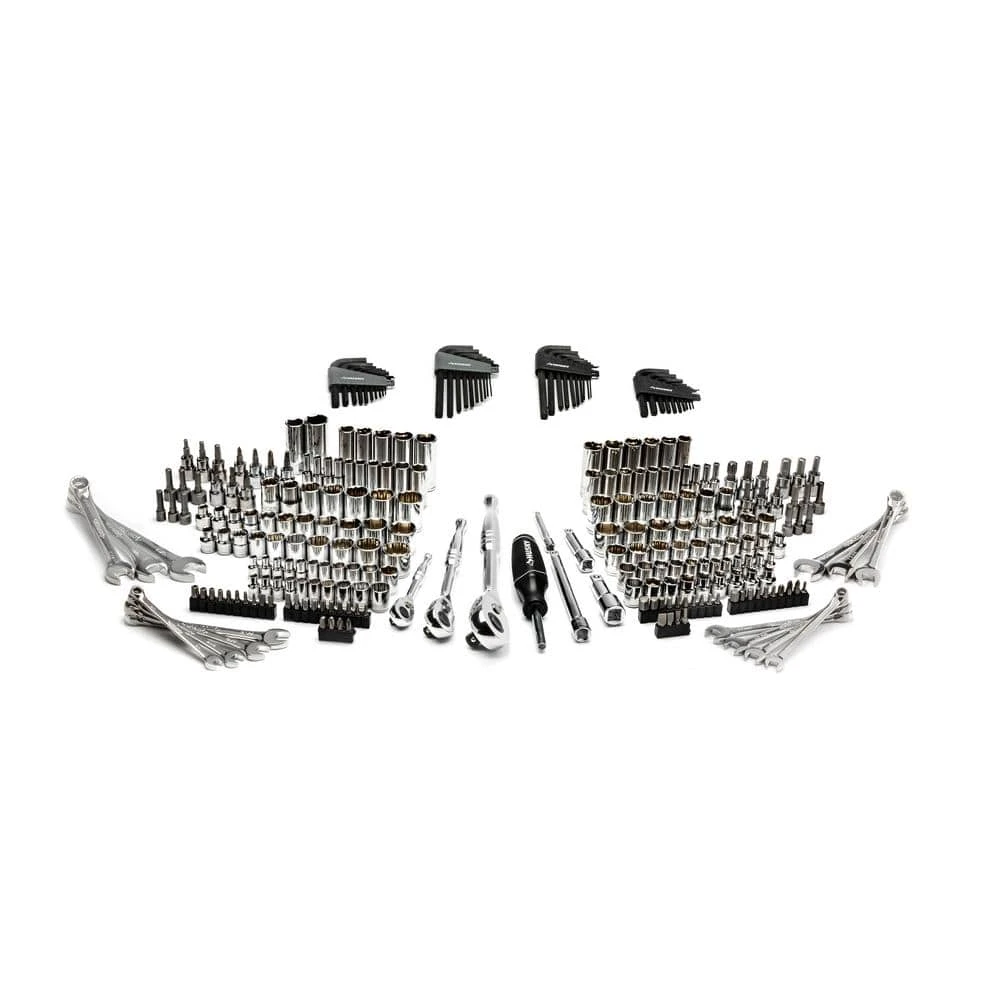 - Set includes 1/4 in., 3/8 in. and 1/2 in. 72-tooth ratchets, (54) 1/4 in. drive sockets, (61) 3/8 in. drive sockets, (19) 3/8 in. drive bit sockets, (14) 1/2 in. drive sockets, 4 drive extensions, 14 combination wrenches and 101 other tools
