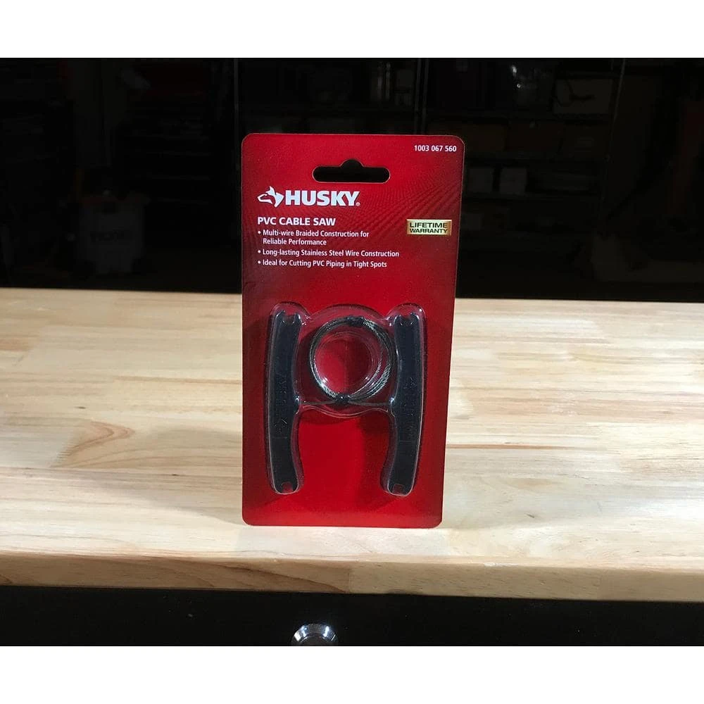 Husky’s PVC Cable Saw uses friction-generated heat to make cuts in tight spaces. The saw cuts PVC pipe, drainage and irrigation tubing from 1/2 in. to 4 in. diameter. It features a durable, braided stainless steel multi-wire cable. For compact storage, the cable wraps neatly into the handle. The perfect addition to your plumber’s tool box. Built to last and backed by the Husky lifetime warranty. Pack includes 8 PVC Cable Saws