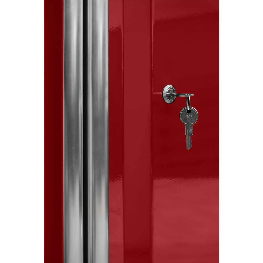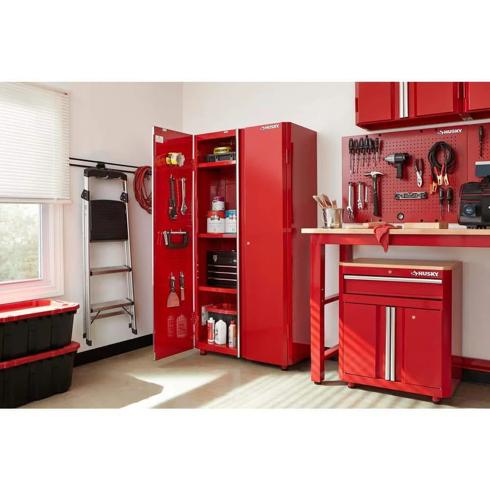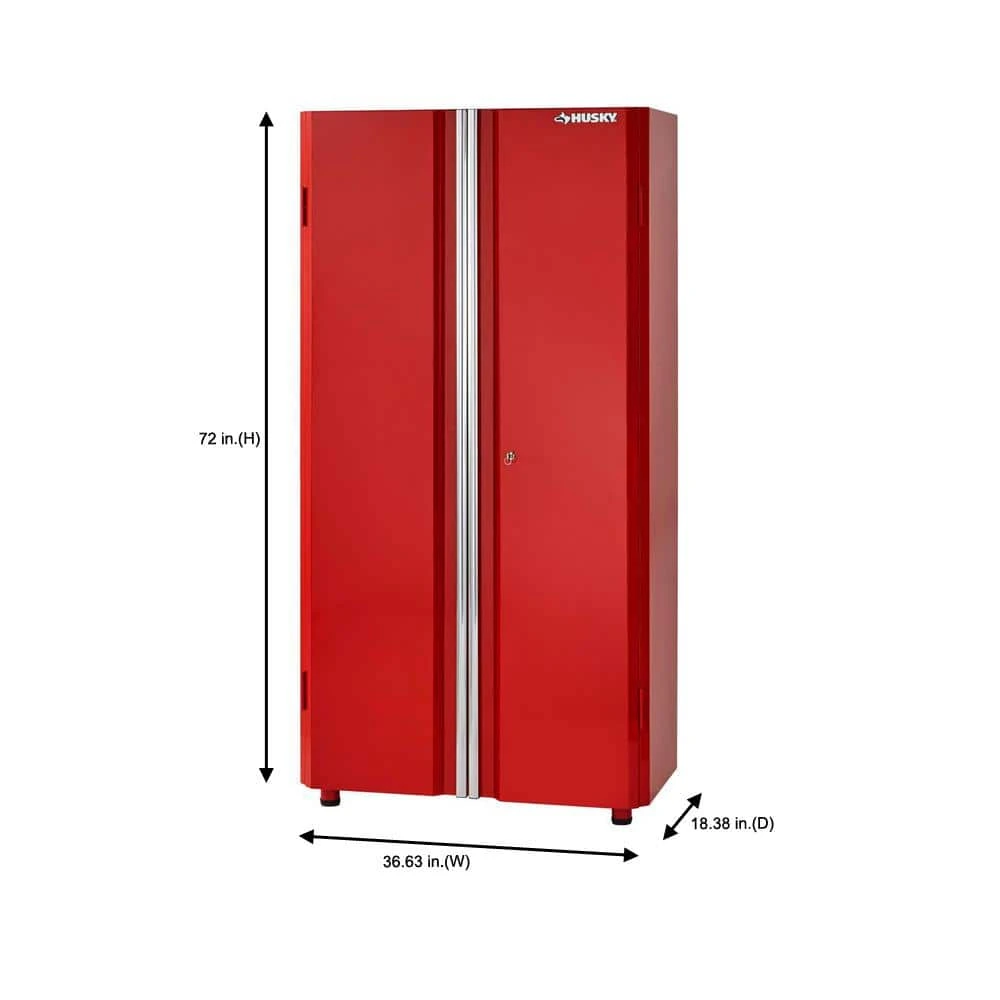 Enhance your workspace with this Ready-to-Assemble 24-Gauge Steel Freestanding Garage Cabinet in Red (36 in. W x 72 in. H x 18 in. D). It ft. s composed of durable, 24-gauge steel. It ft. s built to last. It features three adjustable shelves that allow you to select the height.