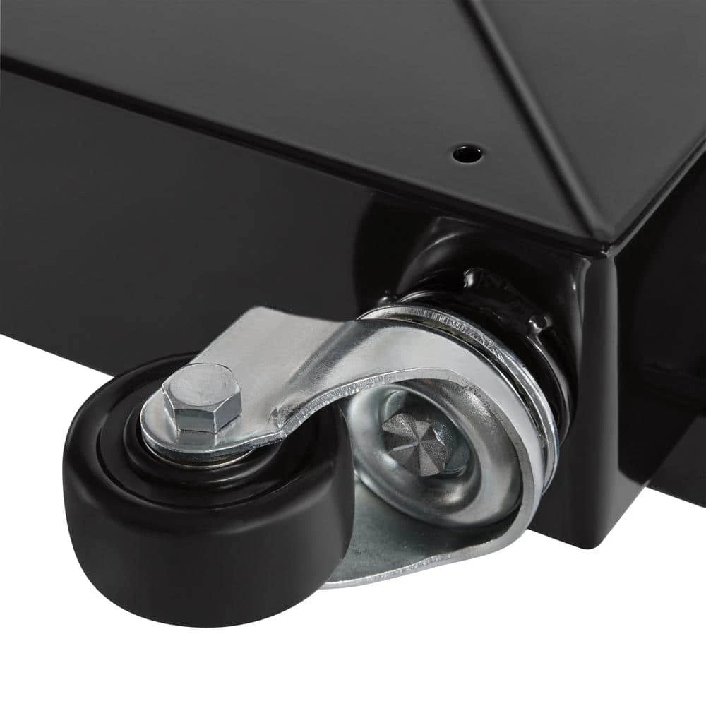 This Husky Ready-To-Assemble 6 ft. Workbench adds workspace to your garage, basement and more without taking up too much space. It features a black-finished steel frame and a solid wood top for long-term use. It folds flat to store away when not in use and the wheels make it easy to fold and release the bench legs