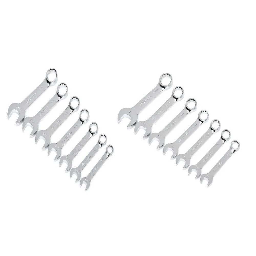 Husky stubby combination wrenches are forged from chrome alloy steel for outstanding durability and strength. The shorter beam design provides access to hard-to-reach fasteners in locations where a standard length wrench just won’t fit. This set of Husky stubby combination wrenches is the perfect set to complete the toolbox of the professional or DIY mechanic.