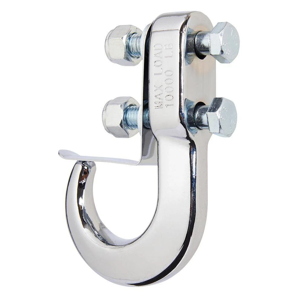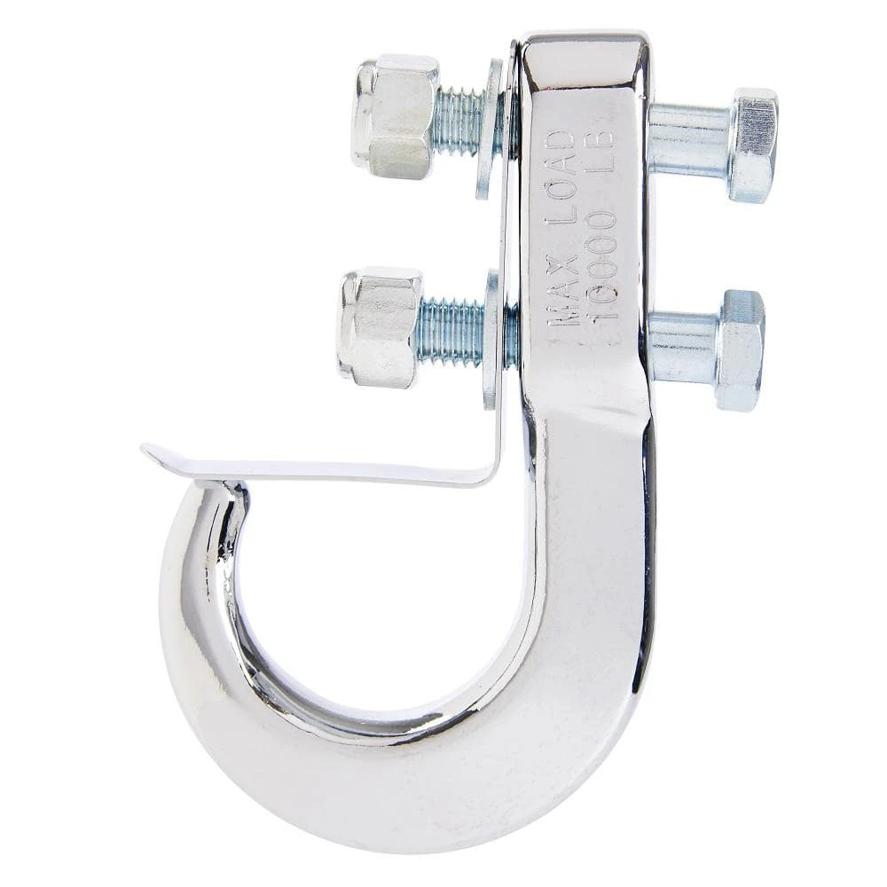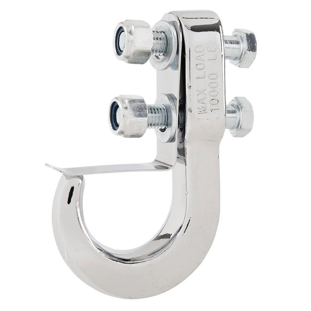 The tow hook is constructed with heavy-duty forged steel in silver finish. The tow hook is designed to distribute weight when pulled while also holding the tow chain or strap in place. Use at home, work or recreation for all your towing, pulling and securing needs.