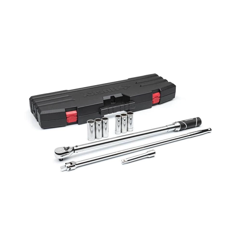 The Husky 9-piece Tire Change Kit comes with all the hand tools needed to remove and install tires on most cars, crossovers, SUVs, and trucks. This set packs conveniently in a storage case, keeping all your tire change tools in one location. 6 sockets cover a wide variety of lug nut sizes to cover most, if not all, of the cars in your driveway. Always consult your vehicle’s manual for proper information regarding jack and jack stand positions, as well as the lug nut torque requirements for your specific vehicle.