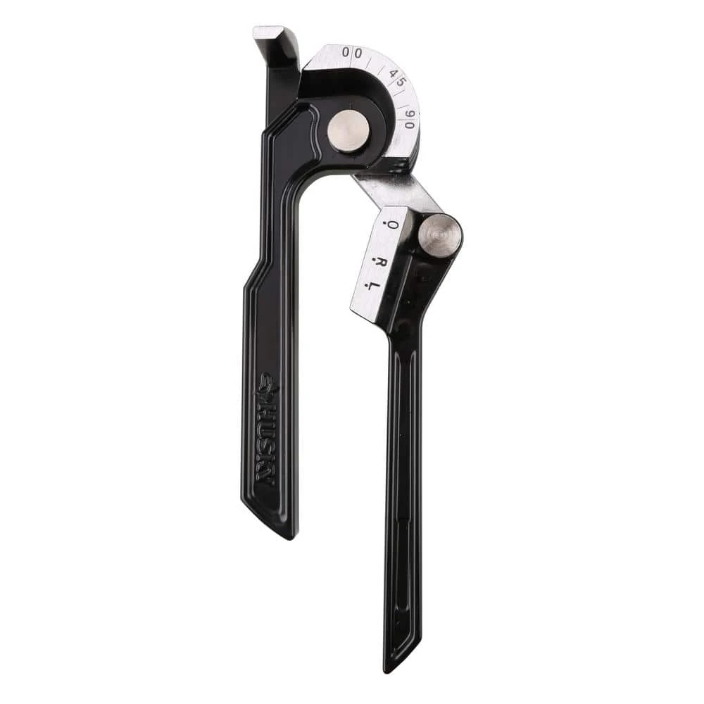 Husky’s Tube Bending Tool provides precise tube bending without kinking or flattening. The tool bends 1/4 in., 5/16 in. and 3/8 in. diameter soft metal tubing up to 90 degrees. Features easy-to-use angle markings for quick measuring. Made of lightweight, die-cast aluminum, it boasts a powder-coated finish that resists corrosion. Finally, the tool is covered by the Husky lifetime warranty for guaranteed long-lasting use.