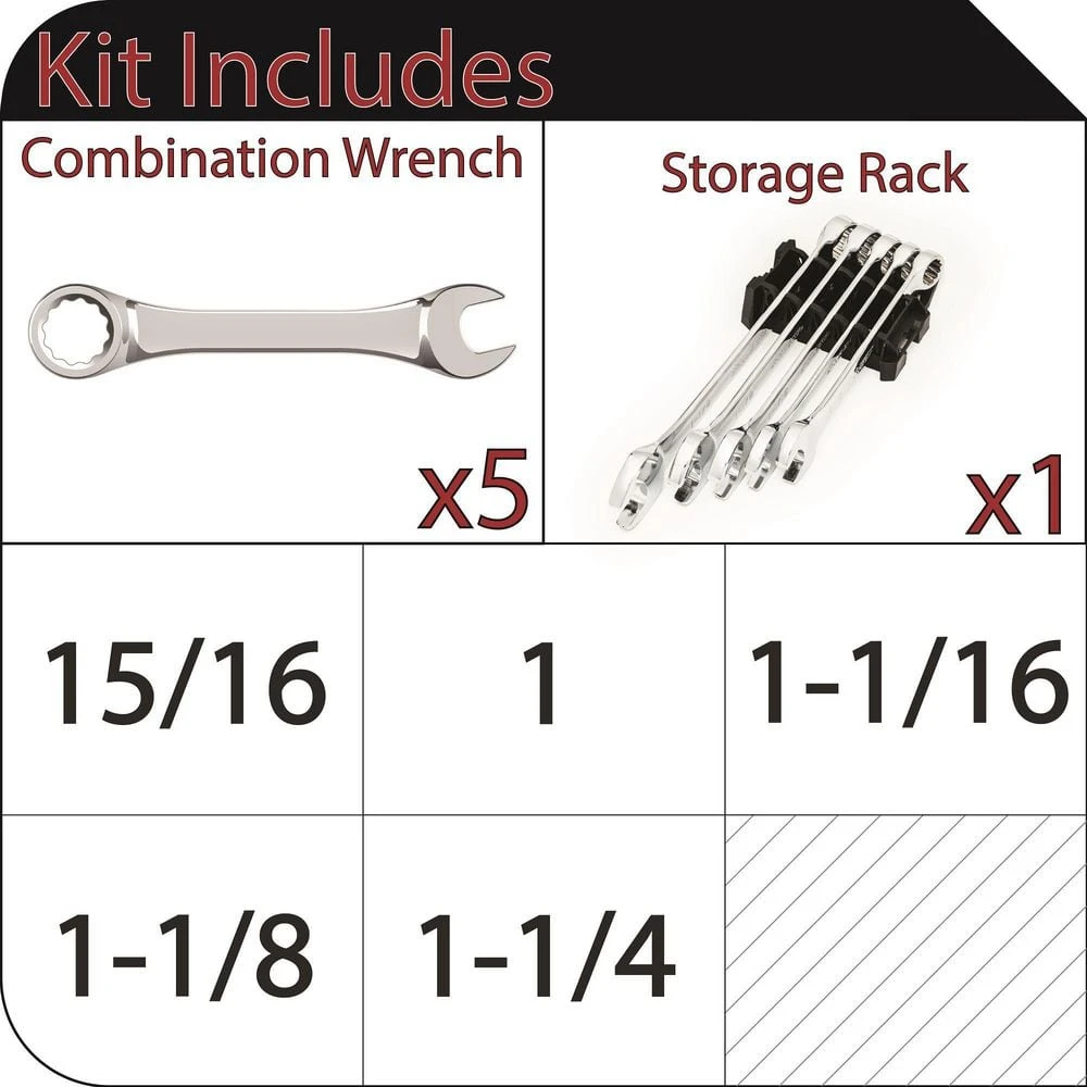 - 5-piece set includes SAE sizes 15/16