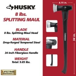 Husky 8 Lbs. Splitting Maul Guarded With 36 In. Fiberglass Handle