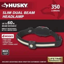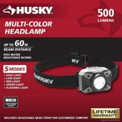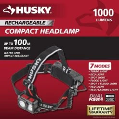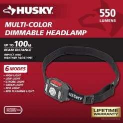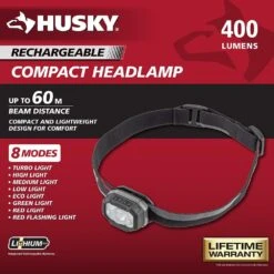 Husky 650 Lumens Dual-Power Broad Range LED Headlamp 7 Modes With USB Port And Rechargeable Battery